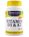 HEALTHY ORIGINS Vitamin D3 & K2 - Witamina D3 + K2 (60 kaps.)